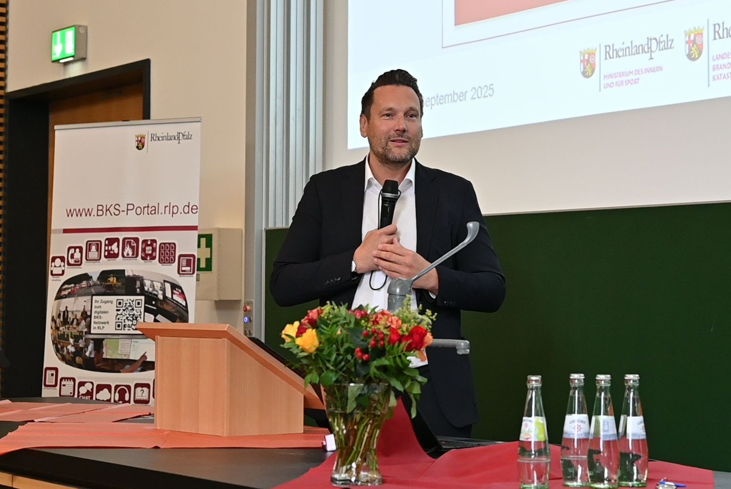 In seinem Keynote Beitrag knüpfte Innenstaatssekretär Daniel Stich daran an. Er stellte nochmal heraus, welchen wichtigen Beitrag das BKS-Portal.rlp im Rahmen der Digitalstrategie des Landes darstellt. „Im Bereich des Brand- und Katastrophenschutzes ist dabei unser „BKS-Portal“ ein zentrales Werkzeug, das über alle staatlichen und kommunalen Ebenen hinweg als Vorreiter für die Digitalisierung und Datenvernetzung im Brand- und Katastrophenschutz steht.“ Neben dem bisher Erreichten blickte er auch auf die Aktivitäten des Landes bei der KI-Nutzung, die auch im BKS-Kontext weitere Möglichkeiten eröffnet.