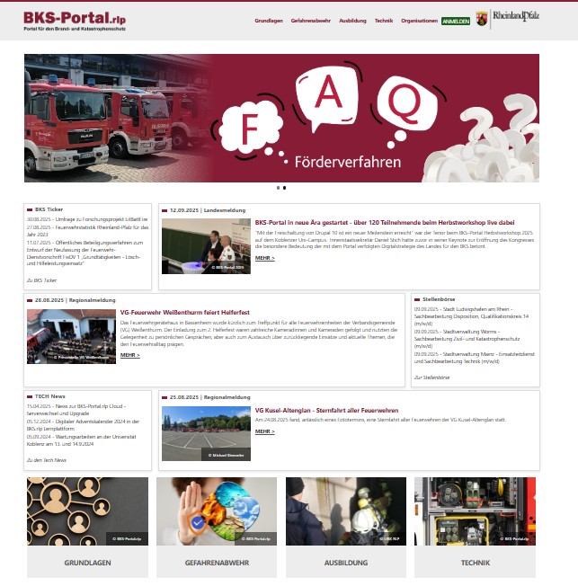 Im Herbst 2025 stand nun mit dem Portal im neuem Design und den aus dem Drupal 7 in das neue Drupal 10 Portal migrierten Inhalten wieder ein besonderer Anlass auf der Agenda. Das Interesse der knapp 120 Workshopteilnehmenden bezeugte den Stellenwert, den das BKS-Portal.rlp heute mit seinen etwa 35.000 registrierten Nutzenden im Blaulichtumfeld erreicht hat.