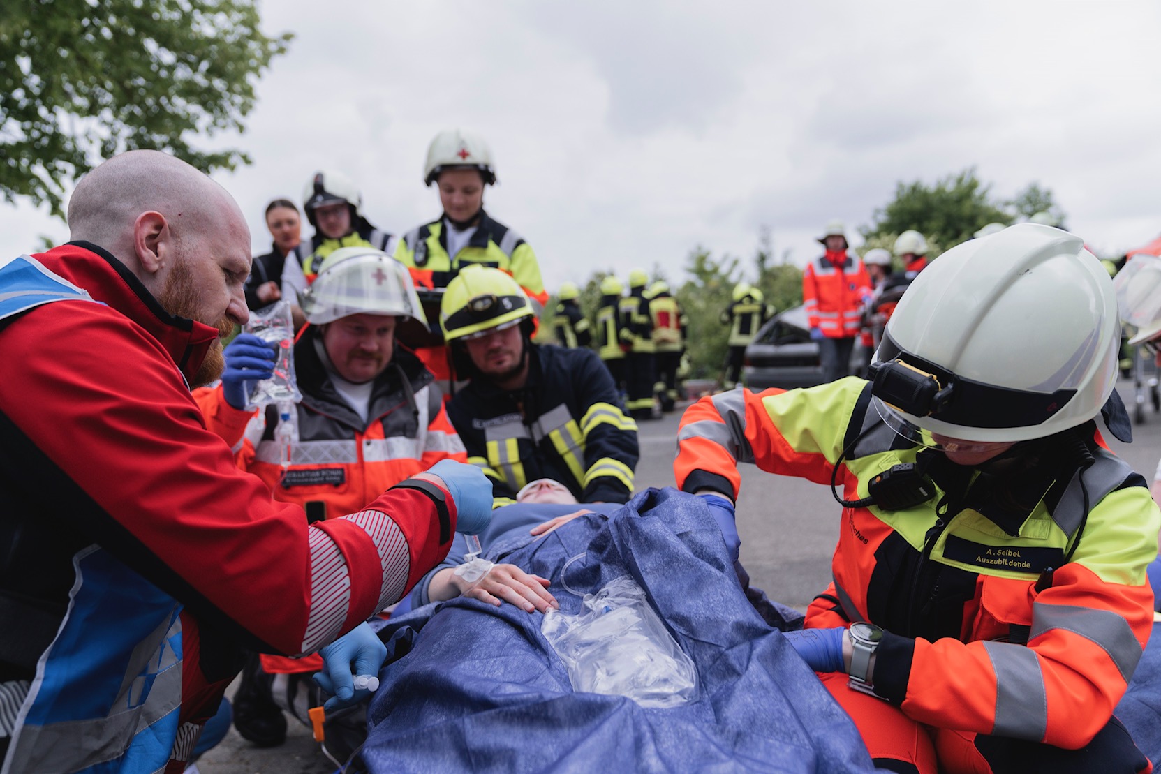Neben vielen Einheiten der Feuerwehr beteiligten sich auch 11 Auszubildende zum Notfallsanitäter des DRK Rettungsdienst Rheinhessen-Nahe an der Großübung. „Für unsere Auszubildenden sind solche großen Einsatzlagen eine wertvolle Erfahrung, um die Zusammenarbeit mit anderen Fachdiensten zu trainieren und das Zusammenwirken der verschiedenen Akteure live zu erleben. Zudem kann so auch die Versorgung von schweren Verletzungen realitätsnah geübt werden", äußert sich Philipp Köhler, Leiter Unternehmenskommunikation des DRK-Rettungsdienstes zur Übung in Wörrstadt.