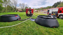 in Material und Ausrüstung wurde danach mit den Tanklöschfahrzeugen der Stützpunktwehren und dem SW2000 eine Wasserentnahme