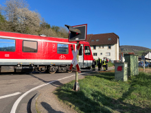 PKW und einer Regionalbahn. Aufgrund der tiefstehenden Sonne übersah die Fahrerin die Signalanlage und den anfahrenden Zug. Der Zug touchierte