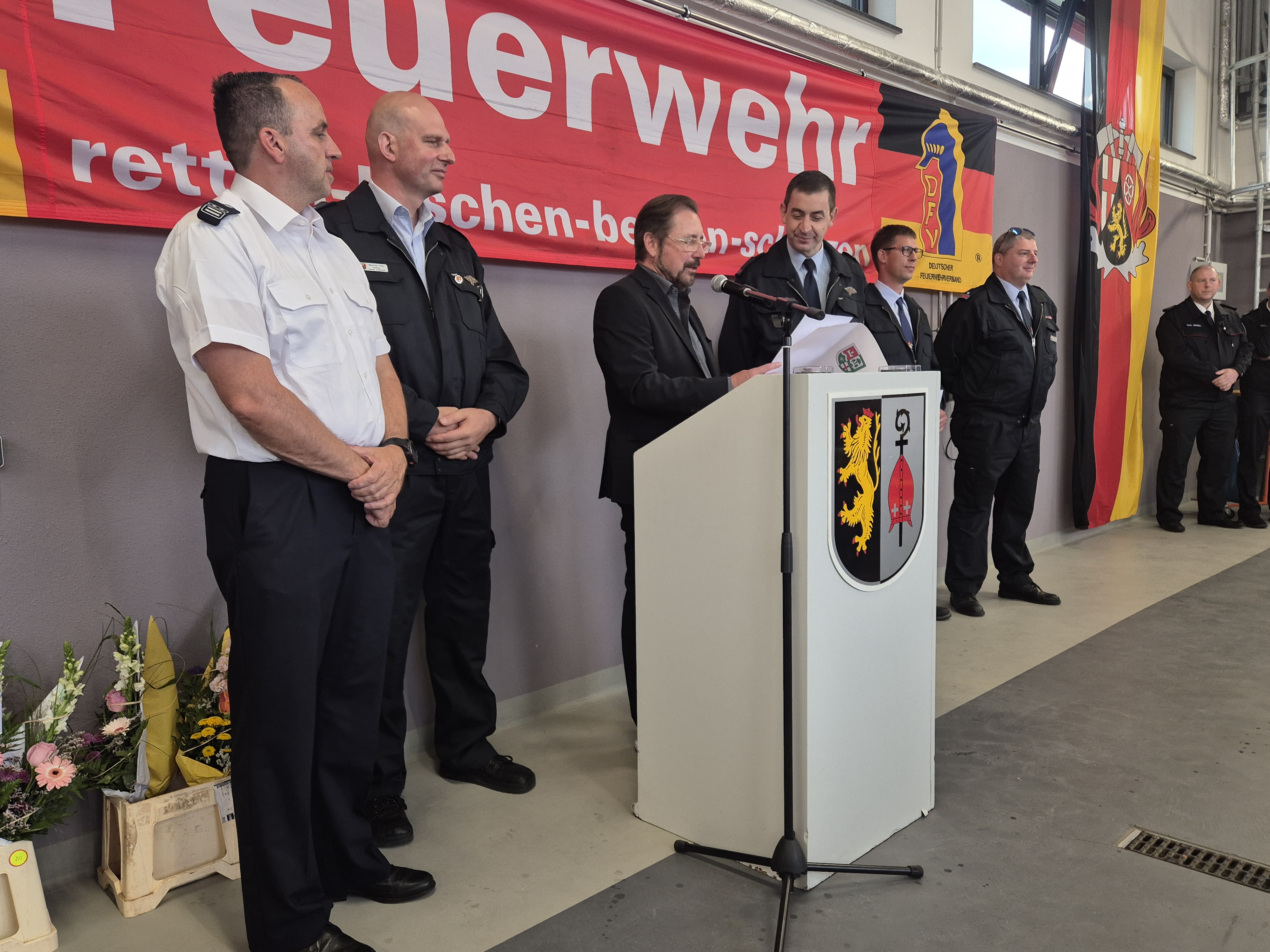 Wehrleiter Andre Stein und Ortsbürgermeister Herbert Christ würdigten ebenfalls die besondere Bedeutung des Neubauprojekts, bevor Pfarrer Christian Adams die Einsegnung vornahm.