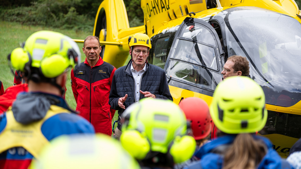 Der in der Westpfalz stationierte Rettungshubschrauber „Christoph 66“ der gemeinnützigen ADAC Luftrettung ist seit rund einem Jahr mit einer Rettungswinde im Einsatz. Diese ermöglicht es, Personen bei Notlagen in unwegsamen Gelände noch schneller zu erreichen und zu versorgen. Darüber hinaus kann sie auch in Katastrophenfällen zur Rettung von Menschen eingesetzt werden und ist damit ein weiterer Baustein der Neuaufstellung des rheinland-pfälzischen Katastrophenschutzes. Innenminister Michael Ebling hat nun gemeinsam mit dem Geschäftsführer der ADAC Luftrettung gGmbH, Frédéric Bruder, eine erste Bilanz gezogen.